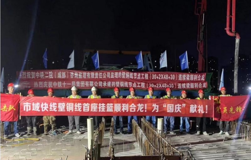 10月1日凌晨,轨道璧铜线传来好消息,由中铁十一局承建的该线路节点工程首座连续梁合龙,标志着项目建设取得突破性进展,为后续桥面铺轨和机电安装奠定了坚实基础。2022-10-08 -